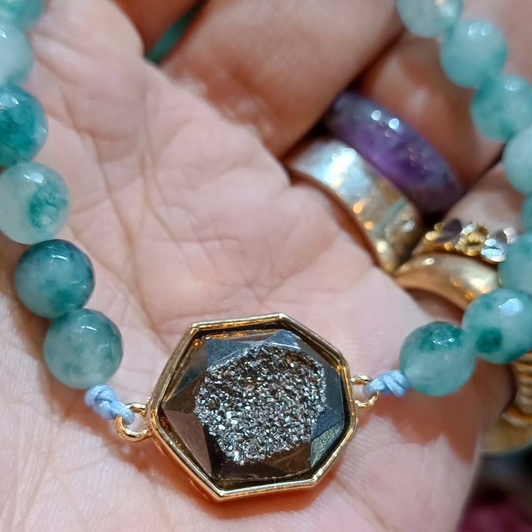 دستبند زیبا و شیک اونتورین تراش با میانکار ژئود تیتانیوم