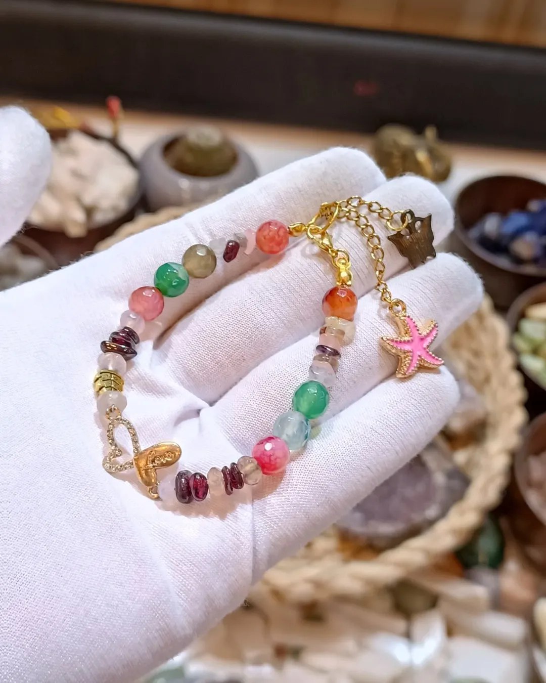 دستبند زیبا و خاص با سنگ های طبیعی و اصل معدنی