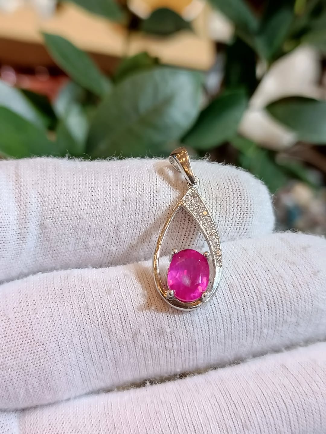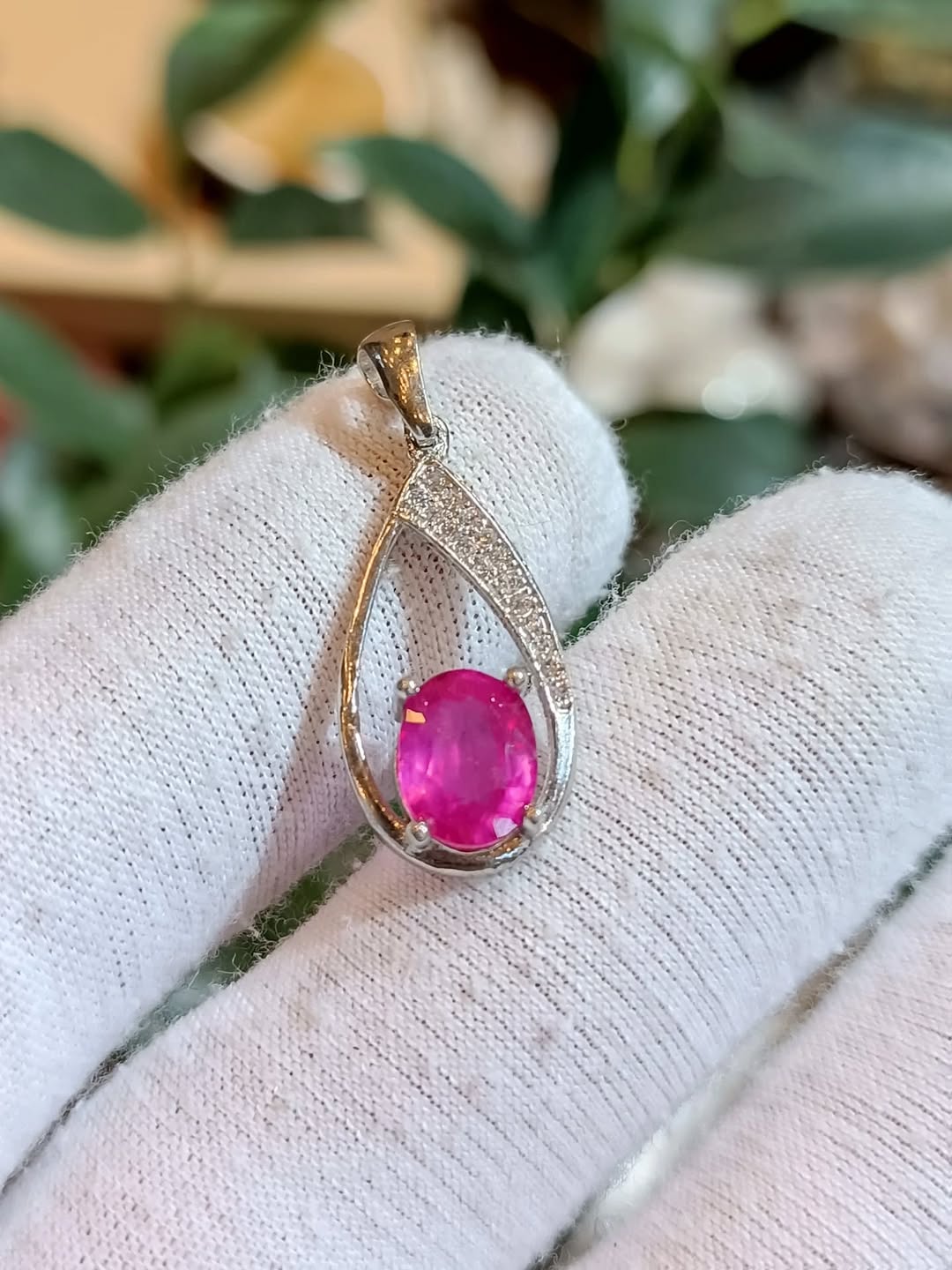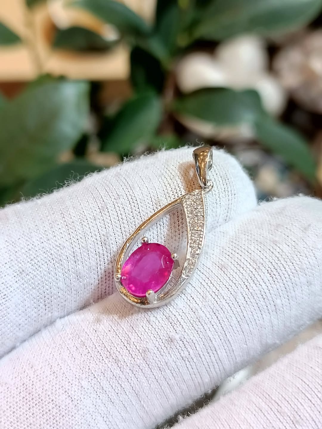 مدال گردنی نقره ۹۲۵ درجه ۱ با آبکاری رادیوم با نگین یاقوت صورتی بینهایت با کیفیت طبیعی و اصل معدنی تانزانیا