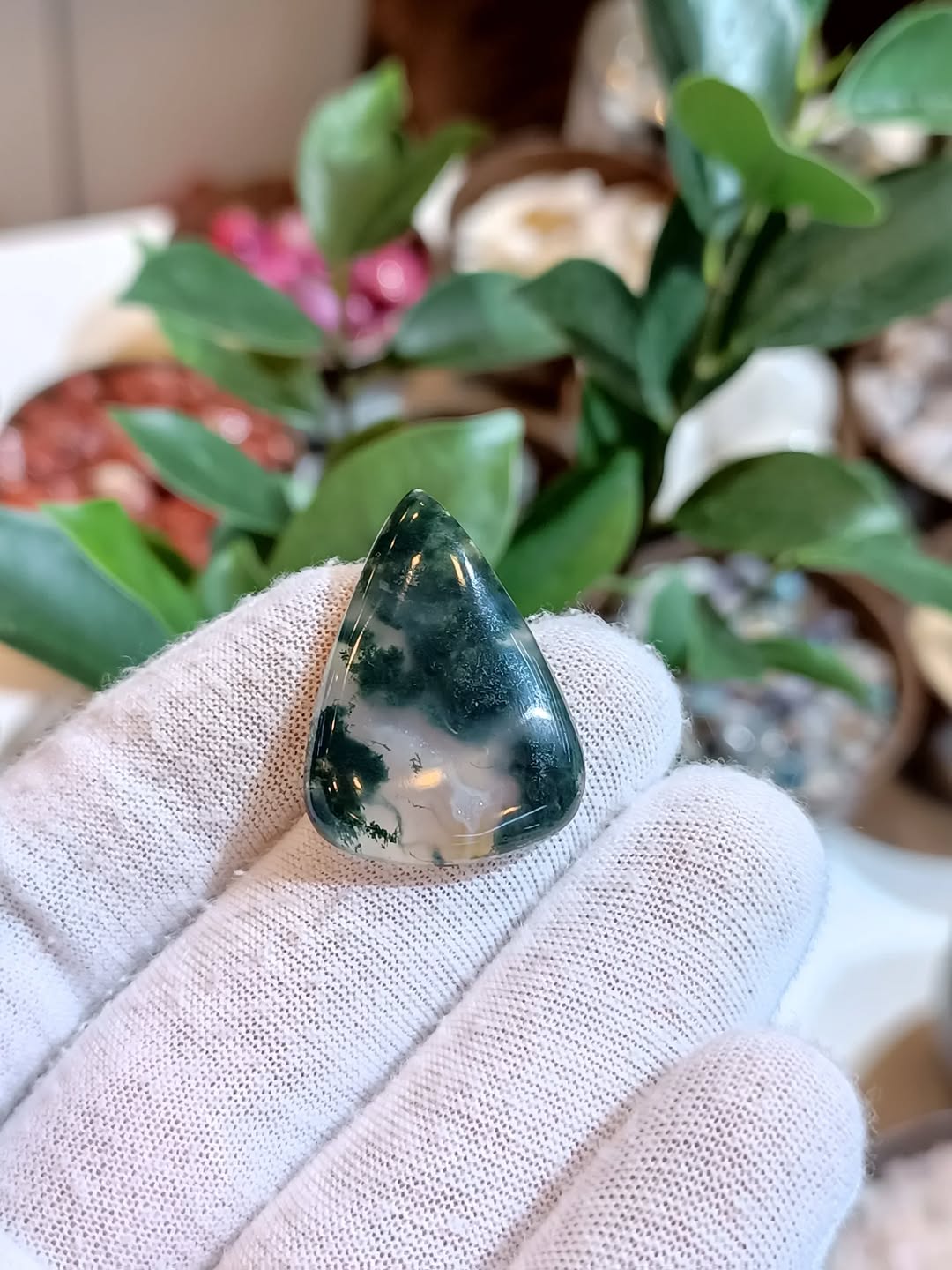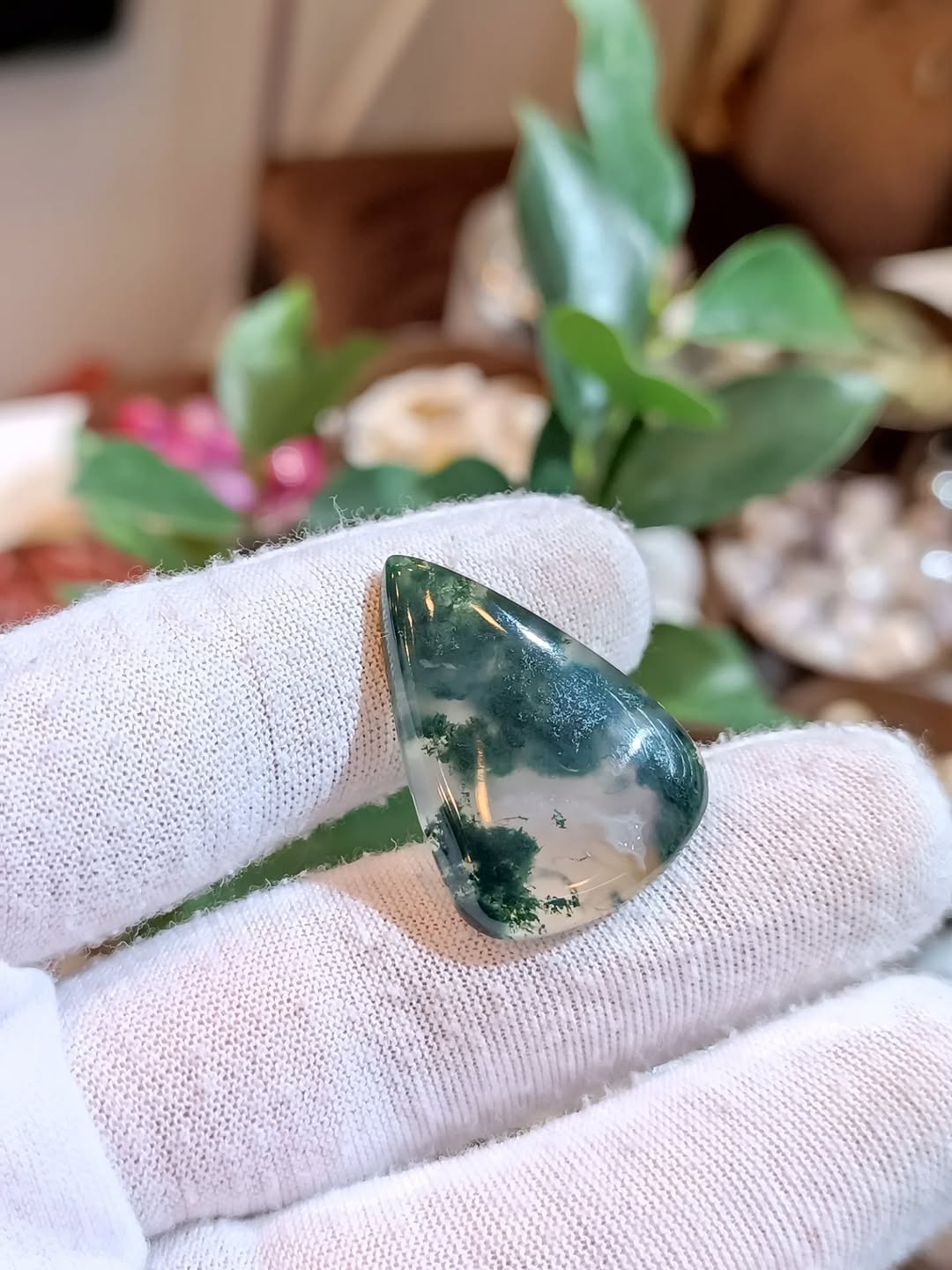 نگین زیبا و خاص عقیق سبز خزه ای طبیعی و اصل معدنی هندوستان