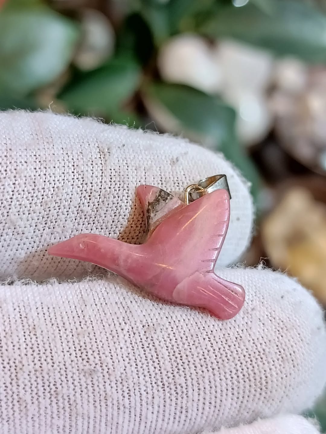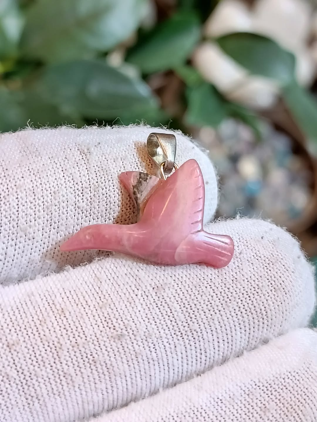 مدال گردنی کاروینگ پرنده از سنگ ردونیت خوشرنگ صد در صد طبیعی و اصل معدنی