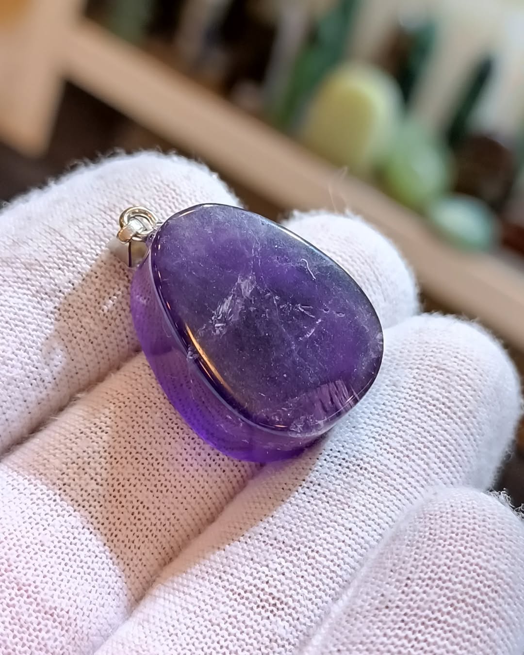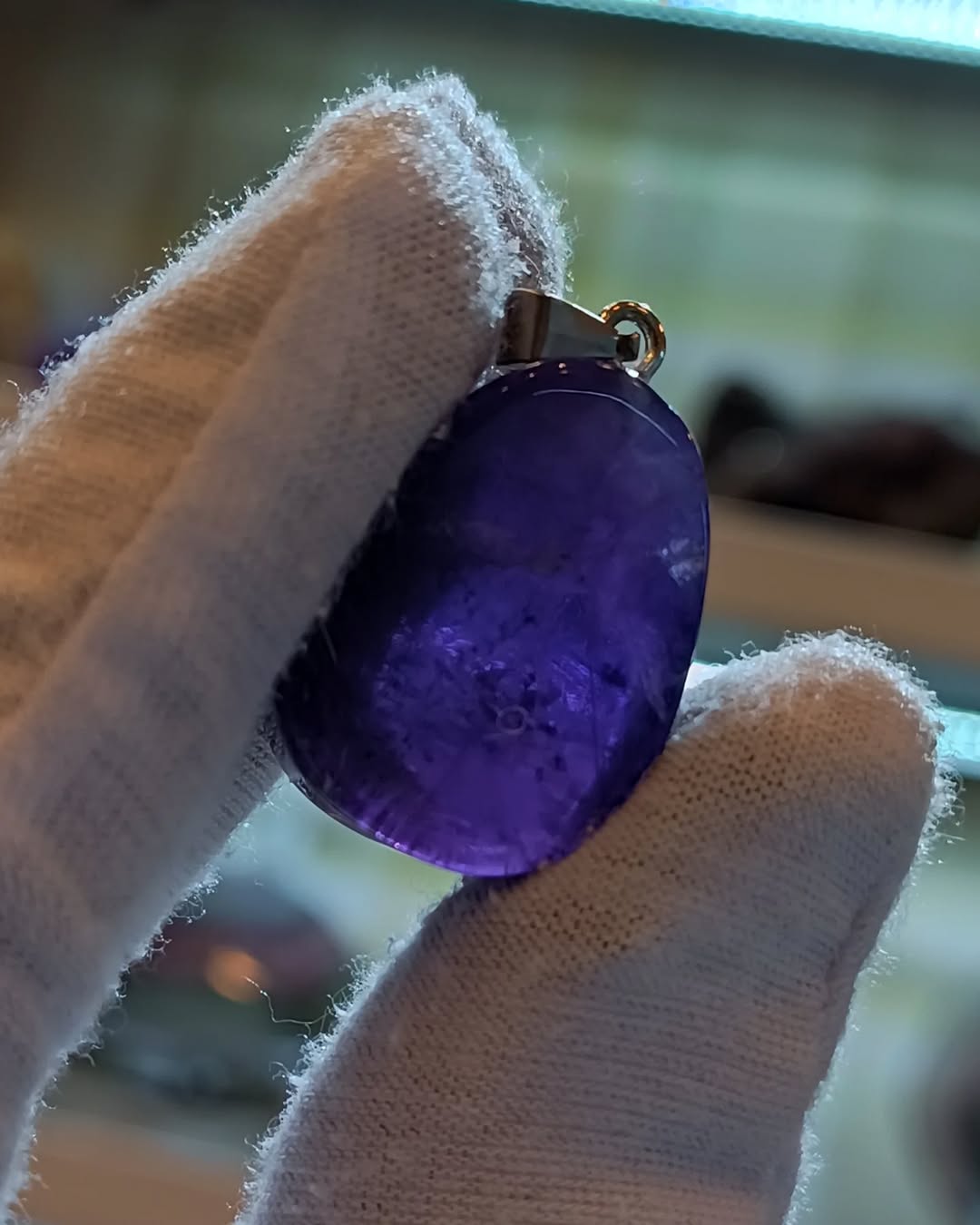 مدال گردنی آمیتیست خوشرنگ طبیعی و اصل معدنی برزیل
